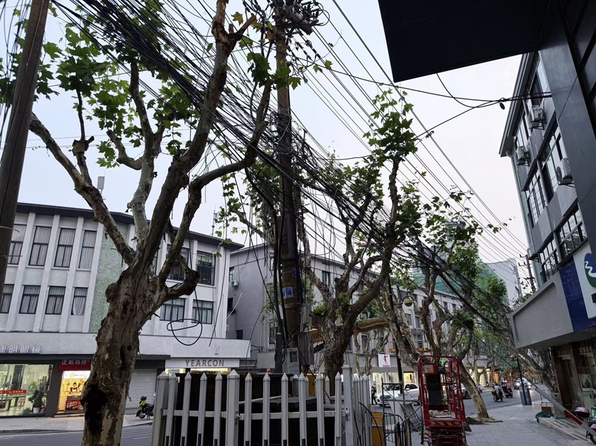一條衣錦街,半部吳越史。衣錦街不僅承載著吳越文化的深厚底蘊,更見證了千年古城臨安的變遷與發(fā)展。由于既有地下管道均已飽和,街道南北兩側的通信管網(wǎng)只能利用桿路架空線的方式進行布放,密密麻麻的纜線就像“蜘蛛網(wǎng)”籠罩在半空,既影響美觀,也存在安全隱患。