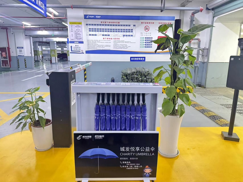 公益?zhèn)愕慕柽€非常方便,只需按照傘架上的操作步驟,掃描關(guān)注“城發(fā)悅享停車公眾號(hào)”,在底部服務(wù)欄點(diǎn)擊“共享有傘”,根據(jù)提示操作,即可享受公益?zhèn)?天的免費(fèi)使用。