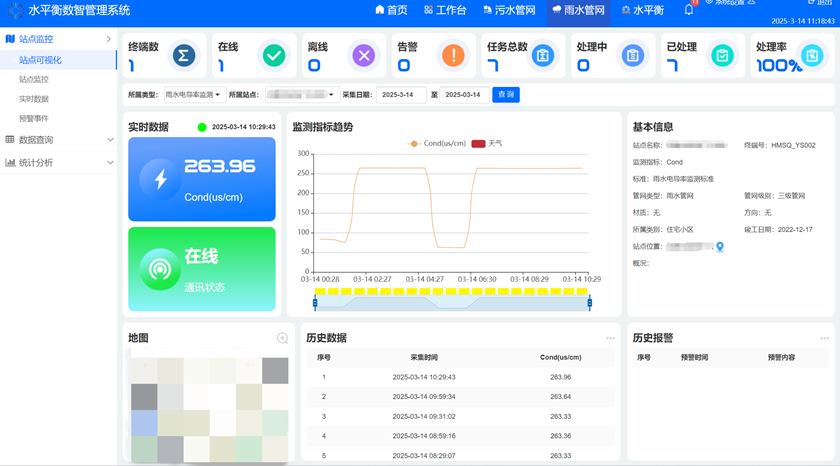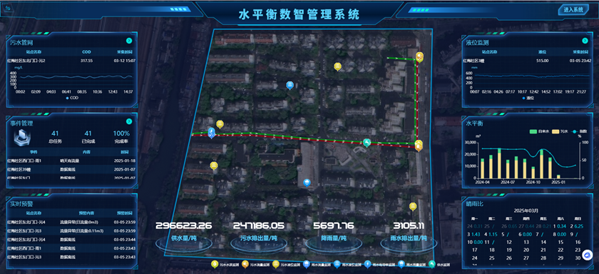 “水平衡數(shù)智管理系統(tǒng)”綜合運用物聯(lián)網(wǎng)、大數(shù)據(jù)分析、在線監(jiān)測等技術(shù),全方位監(jiān)測降水量、積水量數(shù)據(jù),針對性解決治理痛點,極大提升管理效率。